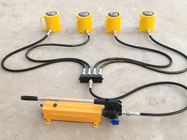 超薄型同步千斤頂主要用于電力電建、機械制造、礦山、鐵路橋梁、造船等多種行業的設備安裝起頂作業,該千斤頂設計有安全保壓裝置,以利于安全操作。并設計四組截止閥,可隨時控制千斤頂同步升與降,該裝置的連接,采用的是高壓膠管和快速接頭連接,使用十分快捷。此系列千斤頂特別適合在空間位置很狹窄的地方使用。